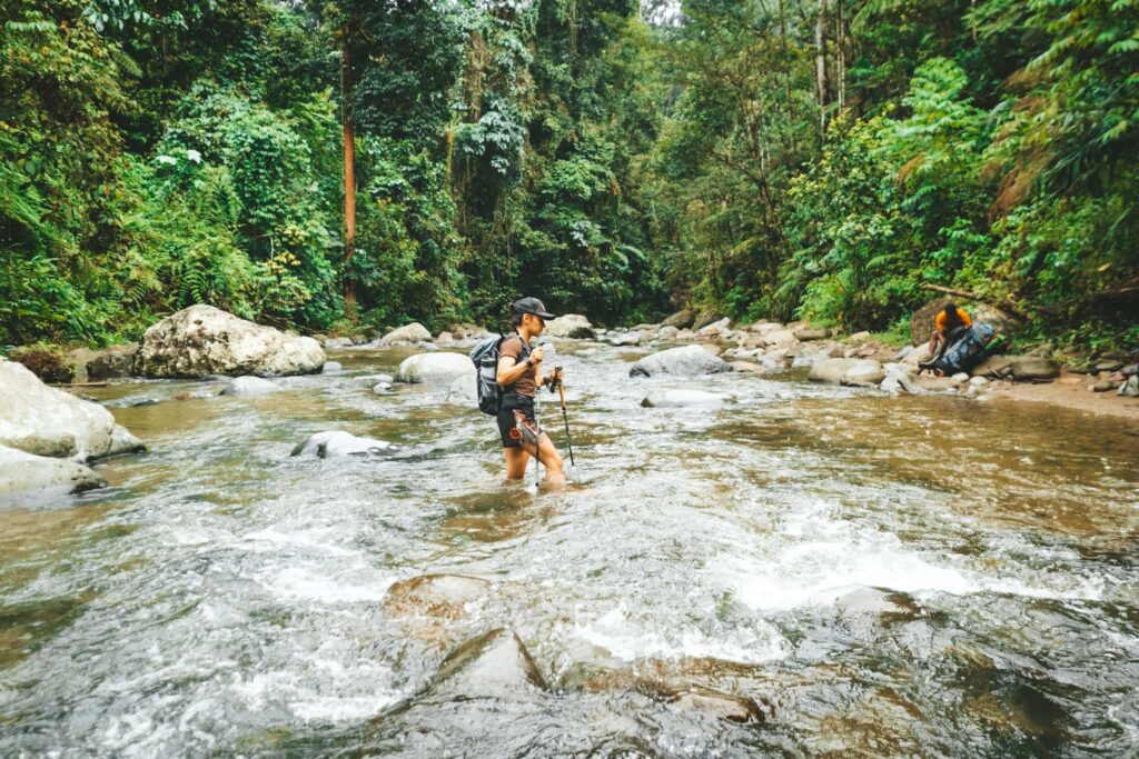 River and creek crossings are frequent. Some are simple step-overs; others require wading through flowing water. After heavy rain, crossings can swell quickly, adding another layer of challenge to this already demanding jungle hike.