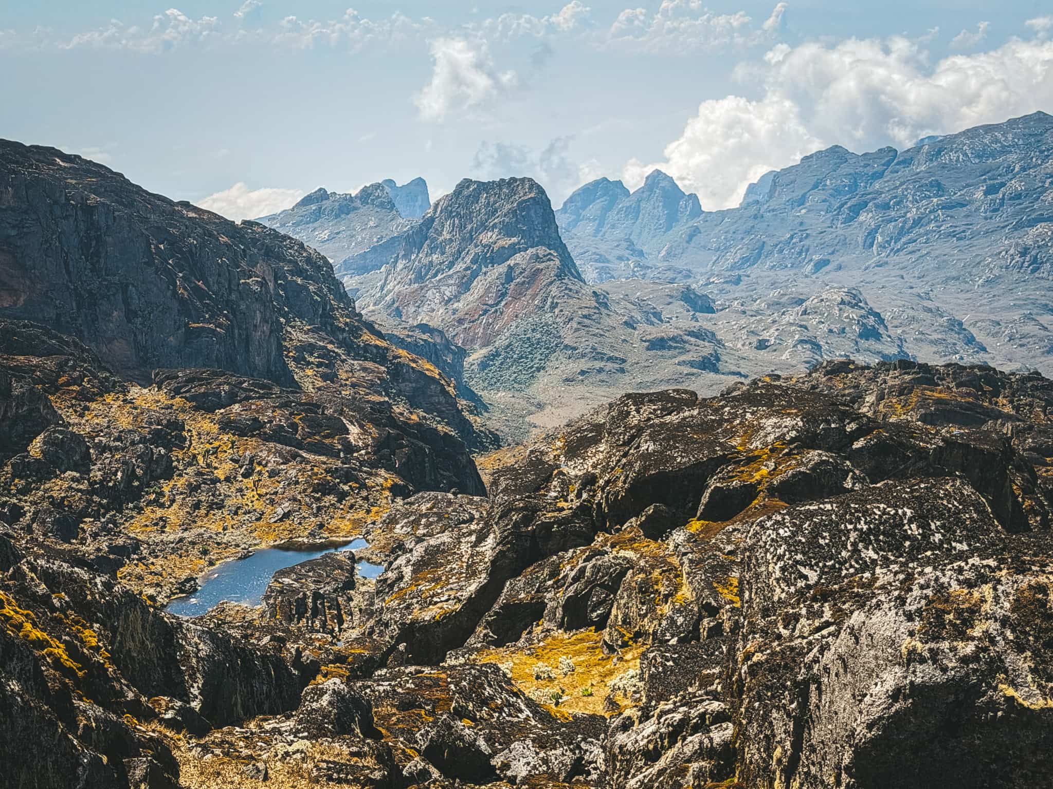 The day starts with views of the four lakes spread across the valley below. We’ll descend a bit from camp to walk around the lakes and then climb up the rocky terrain towards Oliver’s Pass, which sits at 4,505m. Once at the pass, it’s only another 30-45 minutes to the summit on rocky and mossy terrain.